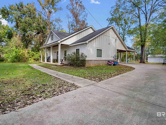 Fabulous LIKE-NEW construction in Saraland almost an acre lot. This gorgeous craftsman style home was custom built in 2018 and is definitely one of a kind. This 3BR/2Ba home features an open floorplan featuring beautiful laminate flooring, granite countertops, white cabinets, backsplash, pantry with custom door, and stainless appliances. To the right of the living area is the primary suite with ensuite bath featuring vessel tub, custom tile shower, and dual vanities. On the opposite side of the home are the additional two spacious bedrooms and bath. The bathroom featuring a single vanity and bathtub with tile surround. Now step outside onto the covered back porch with wood accents overlooking the spacious backyard with above-ground pool and storage building. This home includes 2 lots making it just under an acre in total. Sale will include parcel #R022202044002076.002. Contact your favorite real estate agent to schedule a showing before it is gone! Buyer to verify all information during due diligence.