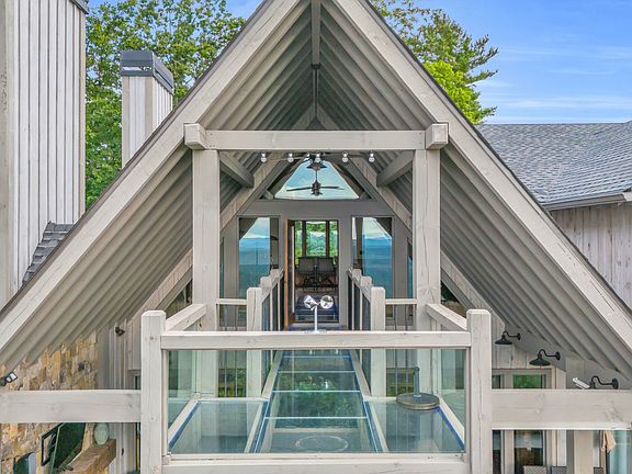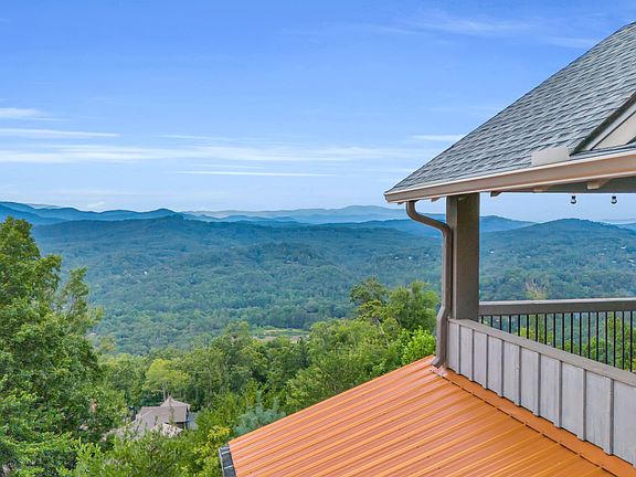 **Priced Below Recent Appraised Value** Elevating mountain living to an art form, this 4,800 square foot custom estate in the prestigious gated community of Blue Ridge Heights was showcased in the 2021 Blue Ridge Parade of Homes and masterfully built by acclaimed craftsman Kevin Teague. Set on a gently rolling 1.07-acre corner lot bordered by three unbuildable parcels for privacy, the home offers sweeping, year-round mountain views and a seamless blend of modern luxury and timeless craftsman design. Concrete frame construction is softened by warm wood siding, while inside, Acacia wood floors, Aspen wood ceilings, and floating ash staircases with integrated LED lighting flow throughout, complemented by a mix of drywall, natural wood, and shiplap that adds warmth and texture. The owner's suite offers deck access, a walk-in closet, and a spa-inspired bath with granite double vanities, shiplap detailing, and a tiled shower. A dramatic glass walkway floats above the living room, connecting the main deck to a glass-walled outdoor patio, both enhanced with smartphone-controlled LED lighting. Upstairs, a loft with panoramic views and a guest suite with private deck provide serene retreats, while the terrace level adds a second living area, wet bar, guest suite, flexible office or gym space, half bath, storage, and an expansive Trex deck with fireplace. The seller is offering an allowance for custom built-in bunks in the office or gym area, designed with Kevin Teague to integrate seamlessly. Outdoor amenities include a fire pit, custom rockwork, copper roof accents, and two covered parking spaces, while full smart home technology, a whole-home Generac generator, dual HVAC units, and eight mounted TVs provide complete convenience. With refined finishes, a unique layout, and unmatched mountain views, this Kevin Teague Parade of Homes estate offers a rare opportunity to own a home of exceptional craftsmanship in an unforgettable setting.