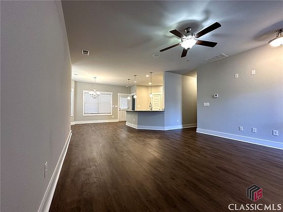 Cozy, move-in-ready home, peacefully tucked away in the heart of Jennings Mill Corner's subdivision on the West side of Athens. This one-level, three bedroom, two bath home feels inviting with its open floorplan layout and split bedroom design. The living area, kitchen and dining all blend for easy flow during your daily living, and the large master suite in the rear offers just the right touch of privacy. Two secondary bedrooms each have generous closet space and share a hall bath. Retreat at the end of the day to the covered back patio which is perfect for the grill and out-door seating .