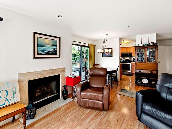 Your private world. Sparkling 2 bed 2 bath with all the upgrades you can imagine. Gleaming wood floors, sun splashed liv/rm with toasty f/p. Designer baths with heated MBR bath and 36" tall cabinetry. Easy care kitchen with custom cabinetry and counter tops. Newer refrigerator and furnace. Large storage bin on spacious deck. Don't forget clubhouse, swimming pool and sizzling spa. A perfect retreat.