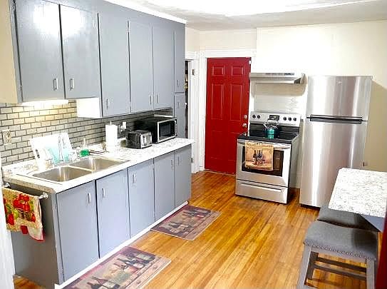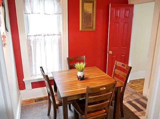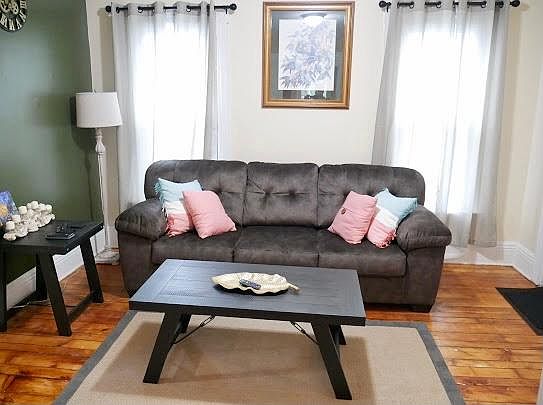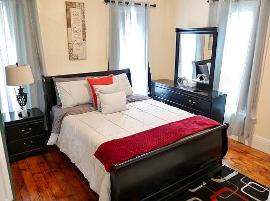 Newly renovated three bedroom two bathroom house with first floor on suite available for medium to long term rental to working professionals. Bedrooms are complete with walk-in closets, 2 queen beds 1 full bed and dresser with mirror. Kitchen has new stainless steel appliances - refrigerator and stove as well as coffee maker, toaster microwave and slow cooker. Living area has full sofa coffee table and mounted ROKU TV. Dining room seating for four. Kitchen has breakfast counter/work station. Counter has built in electronic charging station and adorned with two comfortable stools. House boasts new central air conditioning and WIFI. House can be rented as two units (on suite on lower level and two bedrooms full bath upper level). Living dining and kitchen could be shared. Wired for internet. WORKING PROFESSIONALS ONLY APPLY ABSOLUTELY NO SMOKING IN HOME. Smoking permissible is backyard. No pets allowed without prior approval. Multi car parking on Sawyer St side of house. Tenant pays RGE. Water included in rent.