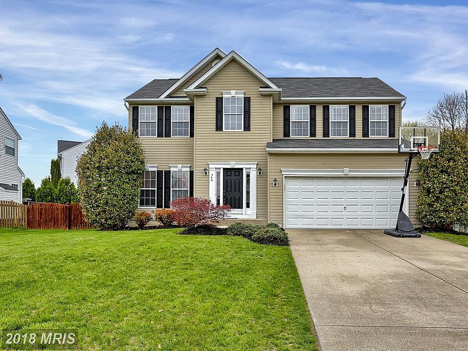 BEAUTIFUL COLONIAL LOCATED ON A LEVEL FENCED LOT WITH BRICK PATIO & FIRE PIT. 4 BEDROOMS W/POSSIBLE 5TH IN LOWER LEVEL W/ 1/2 BATH . WOOD FLOORS ,OPEN EAT IN KITCHEN W NEWER APPLIANCES, OPENS TO FAMILY ROOM WITH GAS FIRE PLACE, PLENTY OF LIGHT AND WINDOWS, SEP DINING ROOM, 2 STORY FOYER, LARGE MASTER W/ SEP TUB & SHOWER, UPPER LEVEL LAUNDRY, 9 FT CEILINGS, 2 CAR GARAGE.. A MUST SEE!