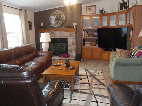This one-level ranch home has been well-cared for! There is a master bedroom with walk-out covered deck, two additional bedrooms and full bath in between. The master bath is right next to the master bedroom and walk-in closet and can be closed off for privacy. When you walk in the front door of this home you will see all the open, spacious areas.....kitchen with breakfast bar, dining, living and family room with built-ins and a fireplace! If you want more then this......add to the property with this 36'x48' heated garage and a fence for those pets!
