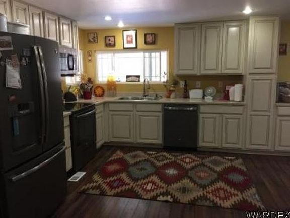 Remodeled home on over 10 acres! Beautiful mountain views on a paved road close to Hwy 68. Within 20 minutes to Kingman/Bullhead City/Laughlin. Drywalled throughout, laminate wood floors, tastefully decorated. Ready for horses! Completely fenced, barn with water, gates for pastures. Covered front porch with gorgeous view. Spacious kitchen, formal dining room, two master suites with walk-in closets. Den off one of the bedrooms. New upgraded AC installed just over one year ago. Pride of ownership shows in this home!