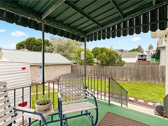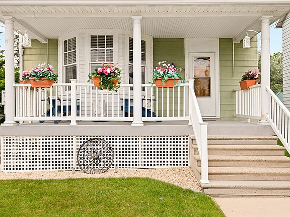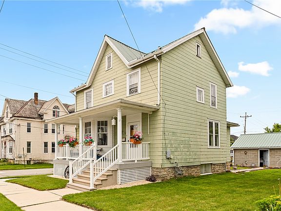 Enjoy sitting on this covered front porch , or the rear porch in our summer months, also leads to the added bonus of the 2 car detached garage, great for our winter weather, all on a corner lot. First floor has a living room, dining room and a bonus space that could be a den, office, playroom or whatever you need. First floor laundry off the kitchen. So close to all amenities, schools and hospital. Upgrades include newer metal roof, gas hot water effiecient furnace, newer water heater is gas. Hardwood floors under some of the carpeted areas, updated full bath. Kitchen with new appliances. Landscaped. Nice cozy home.