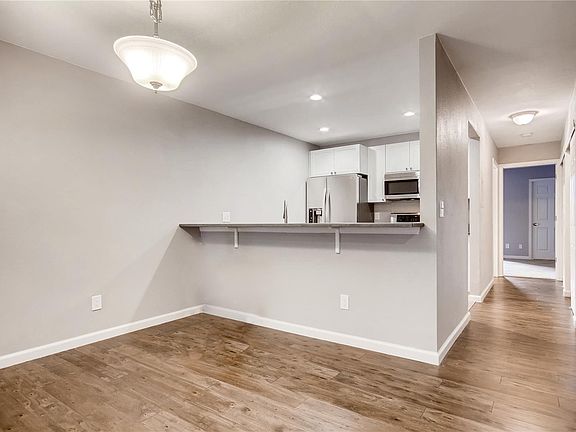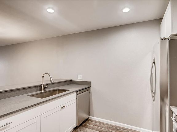 Fully REMODELED home from top 2 bottom in desirable location next to Four Mile Historic Park & Cherry Creek trail! Step in the front door onto gorgeous new HARDWOOD floors throughout the entire living area. Spacious open floor plan like nothing else in the entire complex includes new interior custom paint & recessed LED lighting. Remodeled & expanded kitchen boast STAINLESS STEEL LG kitchen appliances, modern cabinets, QUARTZ countertops w/ overhang breakfast bar, & large floor-to-ceiling pantry w/ extra storage. No other unit has all this space! Completely remodeled bathroom w/ new tile, vanity, & fixtures. Great master bedroom w/ large oversized walk-in closet & private patio. Both the front patio & back patio provide tremendous natural light & are great for entertaining! As summer approaches, enjoy the community pool, tennis courts, & all that the community has to offer. Unit includes an over-sized 1 car garage & lots of extra parking for guests. Washer & dryer hookups. Must see!