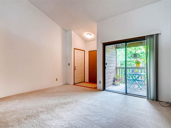 Spacious dual level, 2 bedroom, 2 bath condo lives like a town home! Enter into large living room, with soaring vaulted ceilings and wood burning fireplace. Large covered balcony off of living room is perfect for outdoor relaxation. Kitchen includes appliances and separate dining room, as well as an eat-at bar/pass through. Main level bedroom features its own private south facing balcony, built-in shelving, and large walk-in closet. Oversized loft style master bedroom with private bath. Detached one-car garage is private to the unit. Centrally located, the Cherry Creek trail is only half a block away--ride your bike downtown-- it is only 4 miles! Come get this great place!
