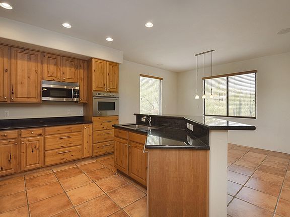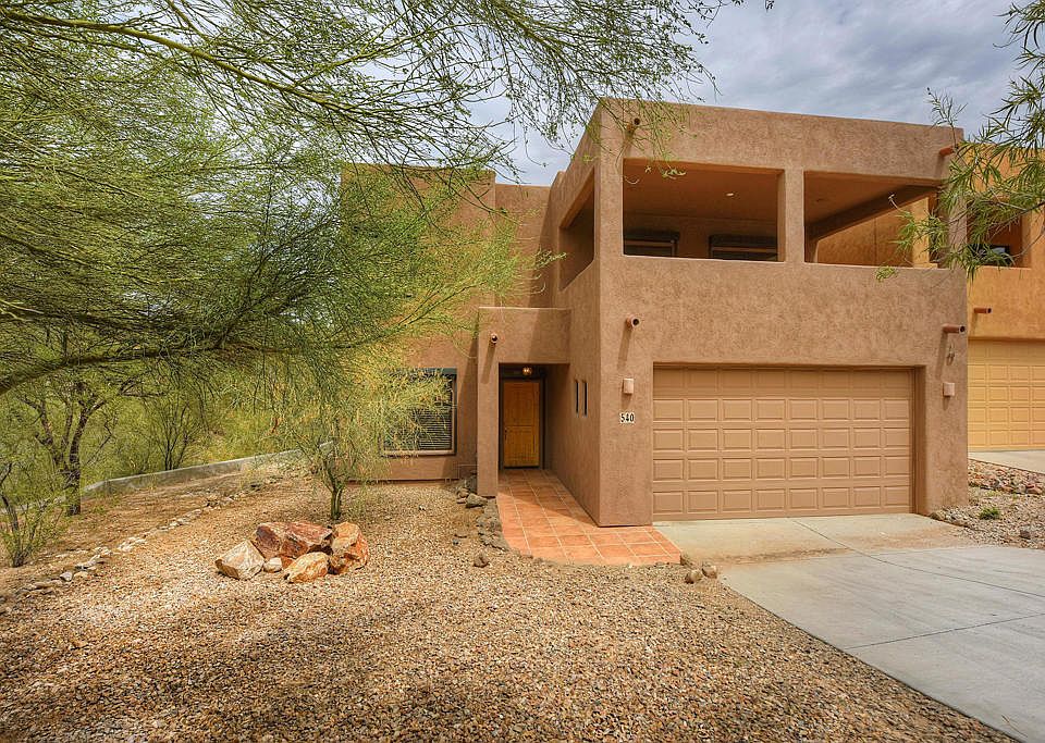 Immaculate two story home in the wonderful neighborhood of Sentinel Shadows- close to the Mercado & downtown Tucson's many restaurants & cultural attractions. Corner lot w/only on one house adjacent giving you extra privacy. Freshly painted inside and out, updated Cooks kitchen overlooking family room w/ stainless appliances, alder cabinets & doors, high ceilings, lots of light, ceramic tile floors throughout house (carpet only on stairs), beehive fireplace in family room, pavered back patio with 2 tiered entertainment space and mature landscaping. Huge Master suite, Two upstairs covered patios give you a great perch to watch the Sunsets. This house is unique for the neighborhood with it's ample square footage & upgrades. There is also a community pool, spa & clubhouse-come see!