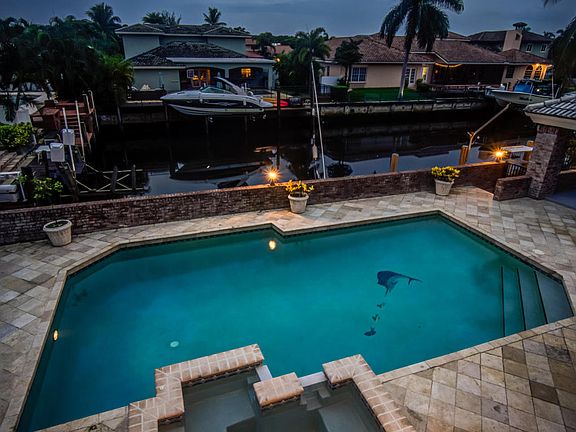 Amazing Ocean Access 2 Story Home ~ 5 BR, 4 BA plus Office on a Cul-de-Sac Street location ~ All Saturnia floors downstairs & wood and carpet up ~ Hurricane impact windows including front door & patio doors throughout ~ Updated kitchen & Bathrooms ~ High volume ceiling ~ FULL House Gas Generator, Salt Water Pool/Spa, Large Patio with Gazebo, Dock Replaced, Shows Beautiful!