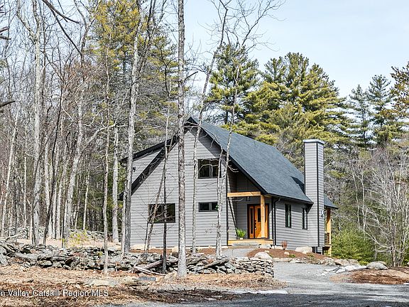 Modern Craftsmanship Meets Natural Beauty in Stone Ridge. Set far back from the road on a long, secluded driveway in the sought-after 'Vly' of Stone Ridge, 540 Scarawan Road is a stunning blend of modern design and timeless craftsmanship. This brand-new, custom-built four-bedroom, three-bathroom retreat offers the perfect balance of privacy and proximity, surrounded by dramatic stone outcroppings and dense woodlands. Stepping inside, you'll find a space that is luxurious and expansive. Soaring ceilings afforded by post-and-beam truss construction, Kolbe windows which fill the home with natural light, and warm oak floors welcome you. The open living room is anchored by a propane fireplace, creating a perfect gathering place. The kitchen is as functional as it is beautiful, with generous storage, ample counter space, and sleek, GE Café appliances to appeal to any culinary enthusiast. A light-filled large main floor primary bedroom is set apart from the public space for a private retreat. Upstairs, you'll find two additional bedrooms, a bathroom, and an additional sitting area open to the floor below. The lower level has a private entrance and many potential configurations. A sunlit bedroom, a spacious office, and a flex room that would be equally suited as a home theater, gym, or creative studio. Designed for effortless indoor-outdoor living, the main level opens onto a solidly built deck—ideal for sipping coffee while taking in the private, wooded surroundings. Below, the lower level extends onto a 700 sq. ft. paver patio, beautifully framed by a boulder retaining wall. The irrigated front foundation garden provides a head start for your personal landscaping vision. Every detail, from the custom-milled railings to the polished concrete lower-level floor with radiant heat, reflects the home's thoughtful, high-quality construction. Energy efficient details include spray foam insulation and an EV charger. Ideally located between some of the Hudson Valley's most charming towns and villages, including Stone Ridge, Kingston and Woodstock, you can easily explore the best of the areas farm-to-table restaurants, hiking trails, and cultural hotspots. Whether you're seeking a weekend escape or a full-time sanctuary, 540 Scarawan delivers a lifestyle that's both refined and deeply connected to nature.