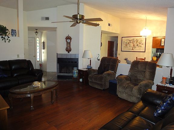 Easy Living in Updated 3 bedroom, 2 bathroom home in a secure gated community! Beautiful kitchen with newer range and granite counter tops. Open feeling with many rooms having vaulted ceilings. All floors are nice cherry wood hardwood or tile. The owners have taken very good care of this home. The back yard has a 9' x 38'covered patio and several fruit trees.