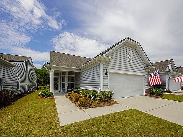This home has it all. Well maintained Taft Street floor plan with a loft located in Del Webb Cane Bay, Charleston's premier gated over 55 active adult community. Situated on a premium pond lot on a private cul-de-sac. The back yard faces a lagoon with two lighted fountains and protected land. The front of the home features an upgraded elevation with water mark brick and a covered entry way. The foyer and dining area feature crown molding and wainscoting. There is 5'' hand scraped wood floors through out the first floor with ceramic tile in the wet areas. The kitchen has a large center island with pendant lights, granite counters, ceramic tile back splash, toasted almond staggered cabinets, Kitchen aid stainless steel appliances and a raised dishwasher. Next to the kitchen is a light filled sunroom with wood floors overlooking the beautiful back yard. A door from the sunroom takes you to a nice sized screen porch with pull down shades and a perfect view of the lagoon. There is also a patio with a built in gas line for your grill. There is crown molding through out the first floor and loft. The large master bedroom has a tray ceiling and wood floors. The master bath has a large tiled walk in shower, double sinks with a granite counter top and a walk in closet. There is a second bedroom and full bathroom for guests and a laundry room on the first floor. Off the foyer is a flex room that can be used as an office. An iron baluster staircase takes you upstairs to a large loft, a third bedroom with a walk in closet a full bathroom and a large storage closet. There are ceiling fans through out the home as well as recessed lighting. The two car garage is finished with painted walls, a laundry sink, tank less water heater and pull down attic storage. Make sure to check out the "Resort" and the numerous amenities. You will see an indoor pool and spa, state of the art gym, large social lounge, craft room, library, outdoor pool, pickle ball courts, tennis courts, tot lot and a dog park. 20,000 square feet just for fun.