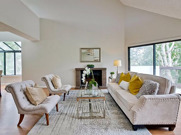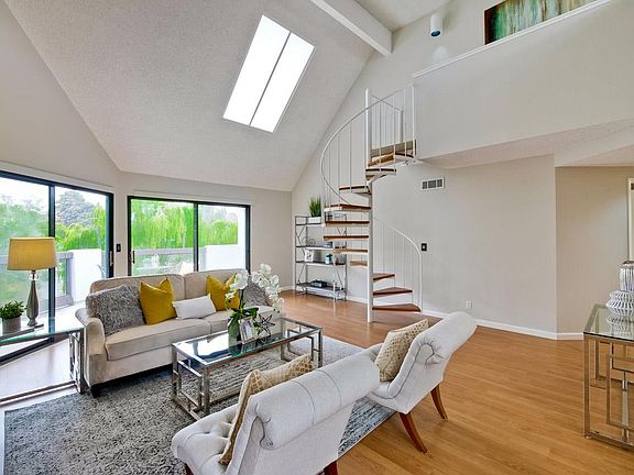 One of the most desirable units in the complex surrounded by interior water and mature landscaping. Enjoy the open floor plan with an abundance of natural light and large patio with views of the water and surrounding landscape. This home features dramatic soaring ceilings, large rooms, upgraded kitchen cabinetry, recessing lights and stainless appliances. The third bedroom is a loft with an open vista. New paint, newer heater and Nest. Located just minutes from very highly rated schools, clubs, parks, library, shopping center, cycling, hiking paths and commuting. This resort-like home is waiting for you.