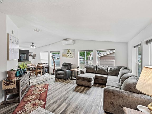 This well-maintained, bright, and beautiful 1,404 sq. ft. home features 2 spacious bedrooms, 2 bathrooms, and an open-concept design with a den/office, located in the desirable 55+ Shorepines Park. The nicely sized kitchen includes a breakfast bar, a large pantry, and a newer range and newer refrigerator. Upgrades include vinyl plank flooring, double-pane vinyl windows, updated light fixtures, and a newer mini split. The spacious primary suite offers a walk-in closet and an attached bathroom with soaking tub. Enjoy outdoor living with a large covered deck, a covered back porch, and a low-maintenance yard. The property also includes a carport with a storage shed and extra parking. Conveniently located near medical facilities, the beautiful Oregon Coast, several state parks, and excellent fishing and crabbing spots. Prospective buyers must be approved by the park manager. Current space rent:$498.00 monthly