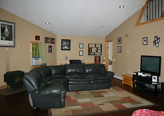 NEW CONSTRUCTION HOME Offers modern living with a practical approach. Single floor living space with open living room with pellet stove and loft area, dining area with access to the private back deck, ample kitchen counter space, three bedrooms, 2 baths (master bedroom with oversized bath and balcony), attached 2 car garage, covered porch and the ability to add a family room to the basement. Privately situated on 4+/-acres in the country with pond and clearing potential for views. REDUCED TO $199,000