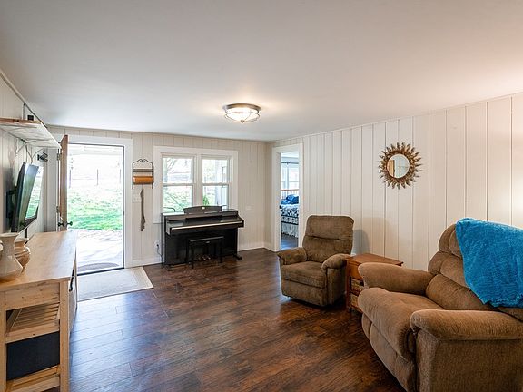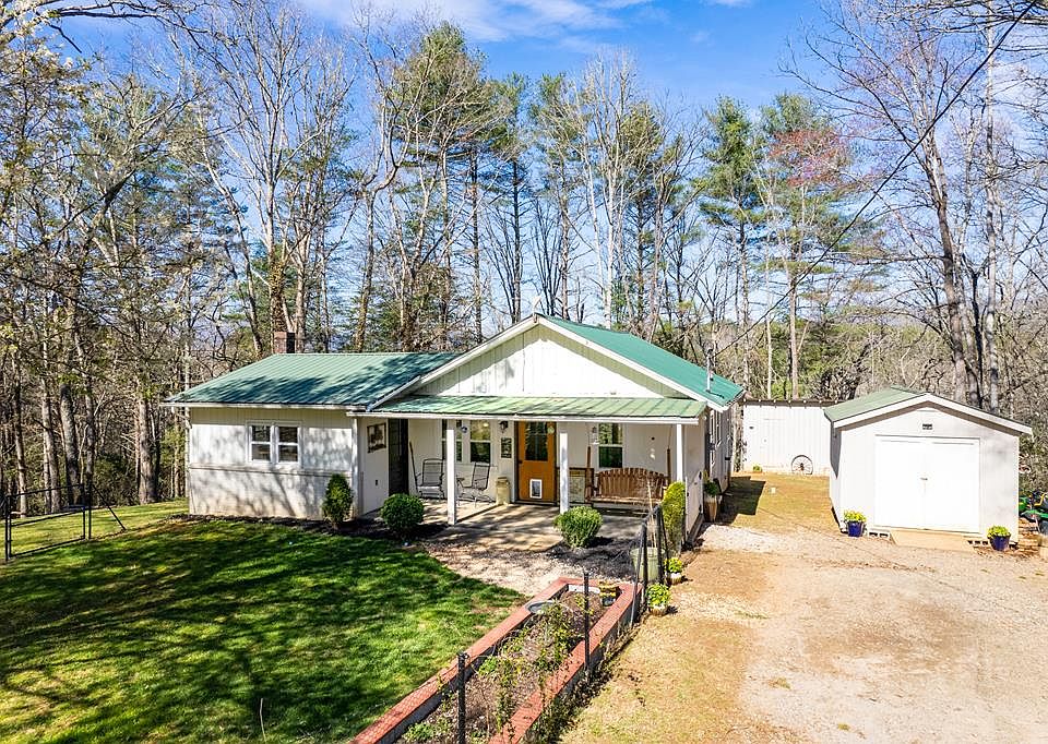 Nestled in a tranquil countryside setting on 8+/- acres, this idyllic farmhouse exudes charm. Remodeled in 2020, this delightful home features 3 bedrooms and 2 full bathrooms. The living room, kitchen, and dining area seamlessly blend together, creating a warm and welcoming atmosphere. The kitchen is a chef's dream, with gorgeous granite countertops, stainless steel appliances, and farmhouse-style fixtures. Step outside through the door leading to the spacious back deck, perfect for grilling out on cool summer evenings. The primary en suite is spacious and offers a serene retreat after a long day, complete with a large walk-in closet adorned with a barn door and dual vanity sink with gleaming granite countertops. The second full bathroom boasts elegant tile accents and a granite countertop. A fenced-in yard section provides safety, and the level yard is perfect for outdoor games and relaxation. Take in the winter mountain views from the back deck, or explore the rolling lightly wooded areas and the second cleared spot. The property also includes two large storage buildings/workshop.