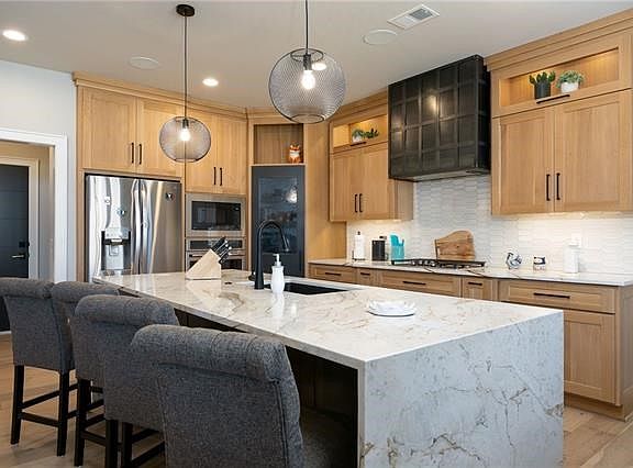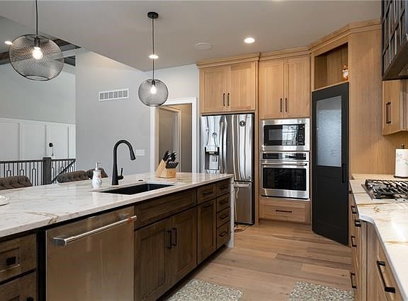 ** Back on the Market - no fault of the sellers! Buyers did not produce funds. **** OFFER ACCEPTED SATURDAY 2/26 **BETTER THAN NEW!! Built in 2021. Seller added $14,000 in beautiful plantation blinds to this 4 bedroom, 2nd tier home! They also installed a $7800 boat lift in their private boat slip that is included with a full-priced offer. This beautiful Custom Modern elevation reverse 1.5 backs to green space with full, mature trees! Master bedroom on the main level with a loaded master bathroom. Main floor has a second bedroom or office. Kitchen has tons of storage with a huge island. Cafe Appliances, WIFI Oven. Bulit-in whole home speaker system. Finished walkout basement w/ entertainment area plus 2 bedrooms.High efficiency HVAC, Cozy covered deck with fireplace.** Builders Warranty in effect until March 28 **