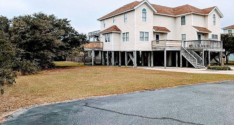 This DUPLEX on a large lot, located in Ocean Sands (section D) of Corolla, provides endless cash flow generating options for buyers! Each side of the duplex consists of two bedrooms, each with their own full bathroom and another half bathroom located on the main level. Both sides boast full kitchens with eat in dining area, and their own washer/dryer located on the main living level. North unit currently has a long- term renter on a month-to-month lease, providing flexibility to new owners. South unit has new paint on the interior, new deck rails, and kitchen is currently in the process of being updated (new cabinets, new sliding door to deck, new flooring and new countertops - note: pictures are pre-reno). Bring your offer now and pick your own countertops! Both units have been regularly maintained with recent roof replacement, siding replacements (Hardi-plank) and twice a year scheduled maintenance on the HVAC systems. Ocean Sands Section D is a great neighborhood with community tennis courts, three beach access ramps, Corolla Ocean Rescue stand with lifeguards from Memorial Day through October, and wide, uncrowded beach even at the height of the summer. Section D is also a one-minute drive by car or a short bike ride on the Corolla Bike Path to the Currituck Club for golf and The Shops at the Currituck Club shopping center with a large Harris Teeter grocery store and fine and casual dining venues. **Sellers willing to pay negotiated commission to buyers agents** Showings by appointments only.