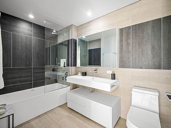 Welcome home to your new Luxury Condo located in the heart of Hell's Kitchen! This 1 bedroom home features floor-to-ceiling double-paned city proof windows with a southern exposure, white oak flooring, Silverstone quartz countertops, imported Italian cabinetry, Bertazzoni gas range/oven, a dishwasher and a Liebherr refrigerator. The bathroom has a custom Italian-made floating master vanity, and a deep soaking tub with a rain-head shower fixture. Apartment is also equipped with a central heating & cooling system, ample closet space, and a washer & dryer.