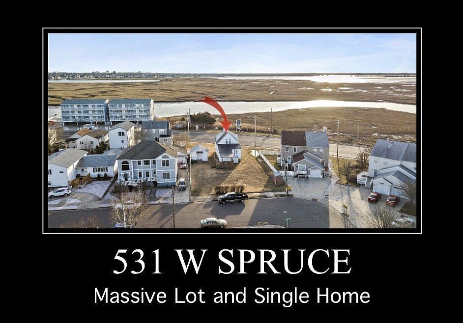Steal of a Deal! The Pine Street Driveway Entrance to this home allows you to Avoid Spruce Avenue all together. This house sits back off the Road which gives you much more privacy than you might think. Use This Property as A Summer Getaway or with Future Development opportunities. Property has been lovingly used for decades as a Summer Home. Unobstructed Sunset Views of the Bay in the Anglesea Section of North Wildwood. Over 11,000 square feet of lot space would allow for the building of 2 Single Family Homes or Possibly 2 Duplexes based on North Wildwood's R2 Development Codes. The Current owners currently use this as their summer retreat and could be continued to be used as such. This Property runs from Spruce all the way through Pine with a Curb cut on Pine allowing you to Skip the Spruce avenue traffic. This Property is listed at over $230,000 UNDER assessed value. Property runs approx 165 Feet on one side. This amazing lot would allow for 2 homes on approx 79x72 lots. Townhomes in this Area have sold for over $700,000. This is also an amazing opportunity to build a massive single with huge Yard and Pool. You Also Have the Potential to Rehab this Property and own one of the Largest pieces of Properties in All of North Wildwood. Please take a drive by this property on Pine Ave and speak to the Neighbors, This tranquil community is one that you and your family will adore for decades.