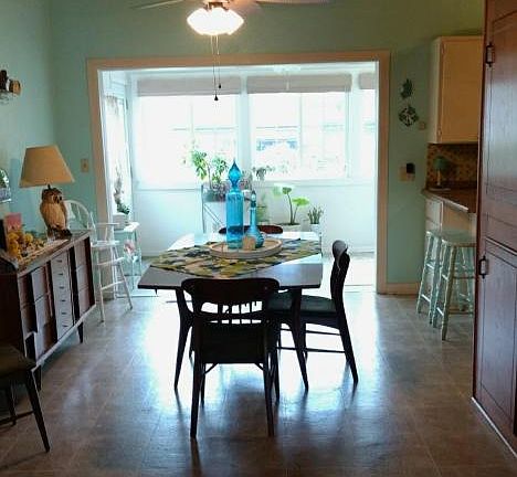 Mid Century Modern! Flat lot! Fenced Back Yard! Potting Shed! South Facing Sun Room! The Living room has a Fireplace with insert! Slightly vaulted ceiling with the warm character of a pine ceiling! Nice size Open Dining/Kitchen area. Three bedrooms and two baths plus laundry/craft/equipment room. The Garage is approximately a 33x15 plus a lien-to (look like a one car but is much much more). Home boasts an outside vestibule and back patio. Easy all on one level! newer metal roof. You can make this your home.