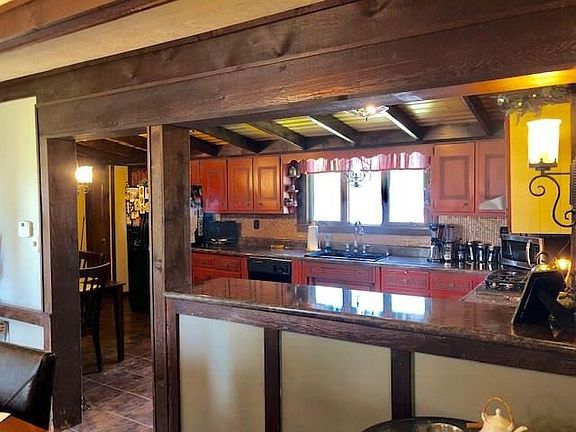 Wonderful and comfortable home! You will be shocked when you see the gorgeous beamed ceilings, woodwork, huge kitchen with beamed tongue and groove cathedral ceiling, open concept snack bar and other fine attention to detail in this spacious home featuring large rooms, 1st floor laundry and cozy 1st floor den plus a great basement family room and 2nd kitchen for entertaining. Master bedroom has 2 walk-in cedar closets and all bedroom closets are cedar! Loads of storage space throughout. The private front porch is perfect for your morning coffee or a place to relax on summer evenings. This stately home is bordered by a handsome stone wall and gate welcoming you to the kids' play yard and cozy porch. Also featuring newer furnace, A/C, hot water tank, huge built-in double ovens and the perfect family floor plan.