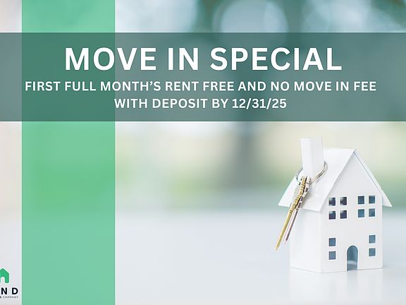 FIRST FULL MONTH'S RENT FREE AND NO MOVE IN FEE WITH DEPOSIT BY 12/31/25**