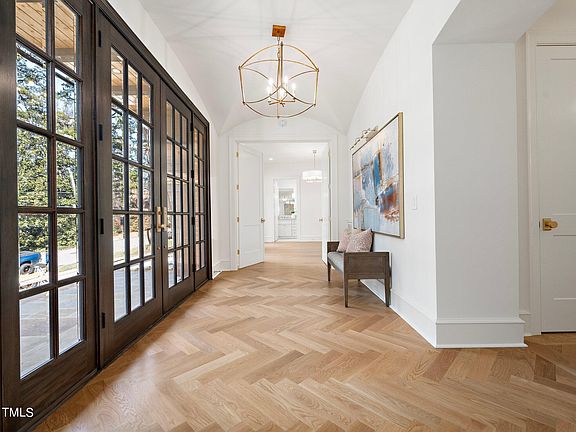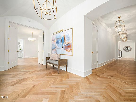 Step into luxury at its finest in this stunning new build by Midtown Custom Homes. Located in prime 27609 zip code, this Midtown beauty is convenient to everything. The unique design gives a striking front elevation, with beautiful brick & a covered porch with stained ceilings & oversized painted brackets. Beautiful entry foyer with rounded ceilings, gorgeous chandeliers, & herringbone floors. The formal dining with custom trim accent wall flows into the butler's pantry with marble backsplash, wine fridge, & glass cabinets. The open/airy kitchen has an incredible gas range & custom hood vent, built in fridge/freezer, & oversized island. Spacious scullery with quartz tops, secondary fridge, & dishwasher! Make entertaining a breeze with easy access to the bluestone patio off the kitchen with built-in gas grill & countertop. Gorgeous living room has coffered ceilings, custom built-ins with reeded glass doors, & shelves with wallpaper. The gas fireplace has a sleek tile surround. Access to the outdoor living area through the massive sliders off the living room! 1st floor owner's suite with coffee bar, access to covered patio, heated tile floors, zero entry shower with glass enclosure, soaking tub, & dual sink vanity. Plenty of space in the custom walk-in closet, with direct access to the main level laundry room. Upstairs you'll find a large unfinished area- perfect for storage, or future projects. Large hallway with custom recessed shelving, & sconce lighting. Second full sized laundry room upstairs. Beautiful executive study with floor-to-ceiling windows, & closet with shelving. Spacious secondary bedrooms, walk-in closets, & baths. Large game room with wet bar, quart tops/backsplash, cabinets, & wine fridge. 3 car garage with epoxy finish floors. The phantom screen porch overlooks the large .52-acre lot with beautiful landscaping, & flat grassy area- perfect for a pool!   (see rendering of the pool in the photos). Elevator shaft in place.  (see rendering of pool in the photos) Elevator shaft in place.