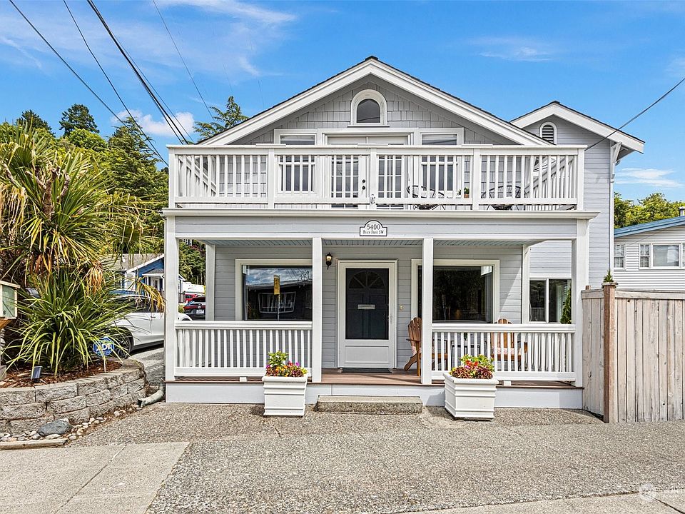 Truly special Beach Drive home is like no other. Light & bright throughout, period details include: ceiling beams, numerous built-ins, hardwood and fir floors. Spacious kitchen with stainless appliances and formal dining room. 3 bedrooms on the upper level. West facing great room with vaulted ceiling, large balcony features peek sound and mountain views - enjoy spectacular sunsets year round. Beautifully landscaped private patio is perfect for entertaining and summer BBQs. Many system updates and 2 off street parking spaces complete this gem. Perfectly situated in the quiet Beach Drive neighborhood yet close enough to Alki beach, amenities, restaurants and shops. Near Me-Kwa-Mooks park where whale pods can be seen swimming by! A must see.
