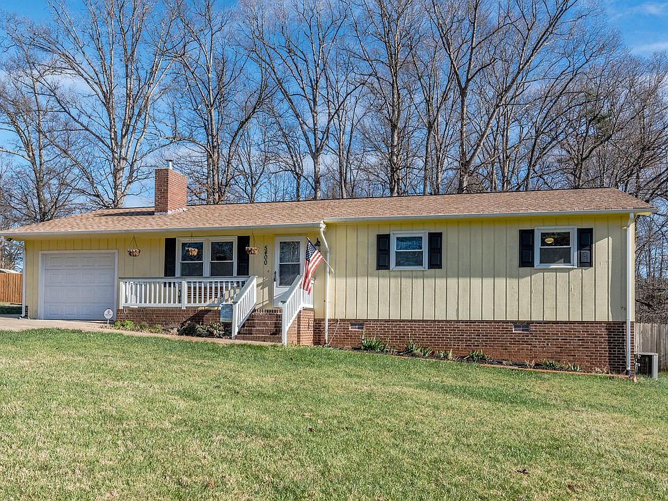 Welcome home to 5400 Beam Lake Drive – a quaint ranch home located in the convenient community of Oakdale, just minutes from Interstates I-77, 85 and 485 in Charlotte, North Carolina! This 3 bedroom, 2 bath home has a freshly painted exterior, interior walls and kitchen cabinets, plus a fabulous rear yard with fruit trees, two storage sheds, and a complete privacy fence! This charming home has been recently painted a sunny yellow which adds to its initial appeal along with the rocking chair front porch and new storm door! Once you step through the front door you are immediately welcomed into the home’s main living space. The great room possesses attractive wide plank laminate flooring, a cooling ceiling fan/light, and an impressive brick, wood burning fireplace. (The fireplace has no known issues and is being sold “as-is”.) Adjacent to the great room is the generously sized kitchen and eat-in area which both have wide plank flooring and fresh wall paint. The eat-in kitchen is highlighted by newly painted cabinetry, attractive laminate countertops and pendant lighting, plus access to the spacious wooden deck that overlooks the large rear yard! The 0.58 acre offers a complete privacy fence and two storage sheds – giving you plenty of space to play, tinker and relax! This home offers three bedrooms, complete with new wall paint, plush carpeting, ceiling fans and ample closet space. There are two full bathrooms (one of which is the master) which boast a single sink vanity, shower/tub combination and nice, new flooring – one possessing tile and the other laminate tile. Everything is spotless and waiting for you! We are certain this home will not last long - contact us today for a private showing! 704-705-7036.