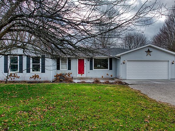 Welcome to this sprawling custom ranch home sitting on 2.77 acres in such a desired location. This lovely home has over 2800 sq ft with 4 nicely sized bedrooms and 3 full baths. The kitchen and dining area open into the living room with large front windows that bring plenty of natural lighting. Three of the bedrooms are tucked into one side of the home while the primary with en suite is situated in another area with an office/flex space attached. There is a massive great room off the back of home with a grand brick custom built fireplace. This is an amazing space for family gatherings. There is also a convenient main floor laundry. with pantry space right off the 2 car garage. In the basement you will find another family room and a gym area. There are 2 huge crawl spaces for so much storage! The home is equipped with a whole house generator. Outside there is a heated 1420 sq ft detached garage along side the circular drive. Great for a car enthusiast. The almost 3 acre lot is so peaceful with beautiful trees perfectly set throughout. This well built custom home has so much to offer. Schedule your appointment to see it today!