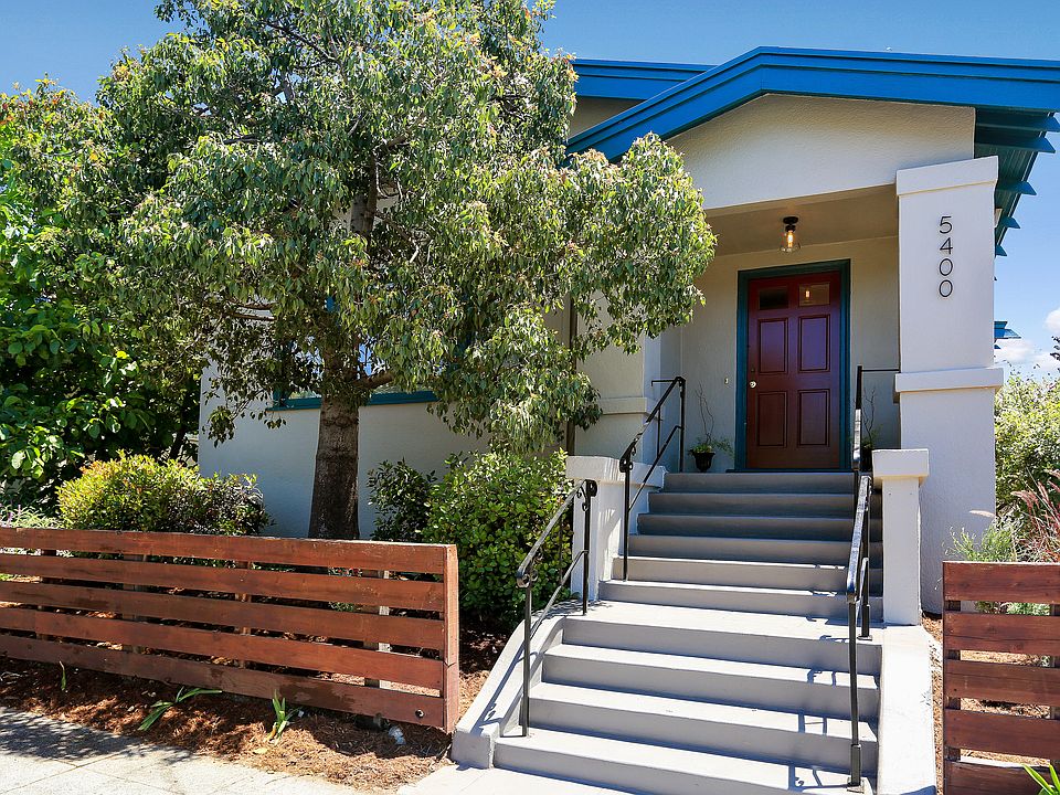 Sunny split level Rockridge craftsman with basement and plenty of storage space. Wood floors, fresh paint, foundation and system upgrades. Corner location and convenient attached garage.Large eat in kitchen,easy access to delightful back deck and fully fenced patio garden surrounded by mature trees and vines. Walk score 90. Blocks to BART, Rockridge + Temescal shops, Frog Park, farmers market, super easy commute!