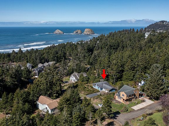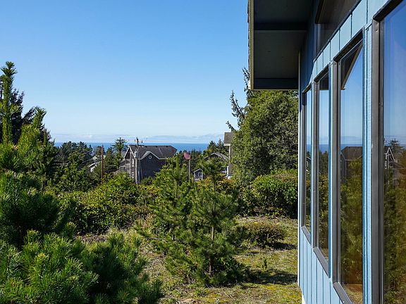 ONE LEVEL OCEAN VIEW affordable home. Large level lot, double attached garage. Secluded sitting area in the side yard surrounded by trees and quiet. Soaring vaulted ceiling. Open concept greatroom. Masonry hearth where you can install a fireplace/stove. Appliances included. Ready to move in! Vacation rental allowed here with county license.