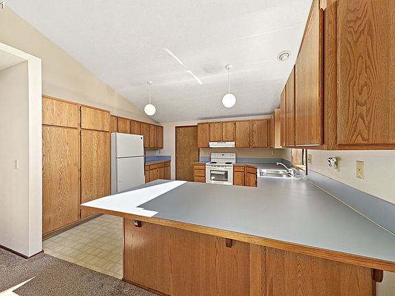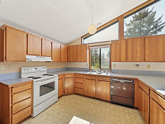 ONE LEVEL OCEAN VIEW affordable home. Large level lot, double attached garage. Secluded sitting area in the side yard surrounded by trees and quiet. Soaring vaulted ceiling. Open concept greatroom. Masonry hearth where you can install a fireplace/stove. Appliances included. Ready to move in! Vacation rental allowed here with county license.
