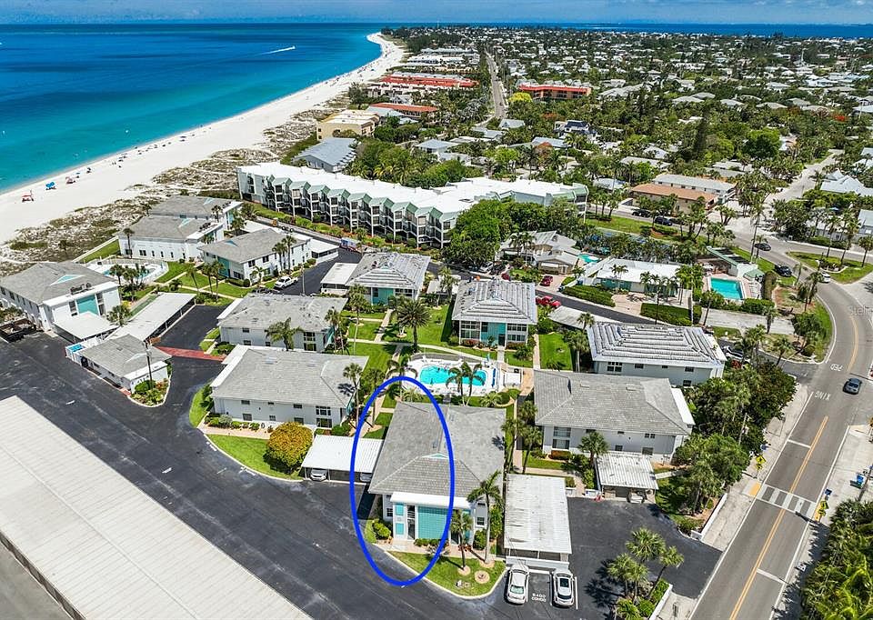 One or more photo(s) has been virtually staged. PRICE REDUCED!! Experience Anna Maria Island at it's best! Are you ready for the slower pace of "Island Life" with tons of vintage Florida charm? 5400 Gulf Drive is a beach front 55+ community with no streets to cross, so you can walk right out to the beach. Perfect second home or live here year round! First floor 1/1 with bonus/sunroom, no stairs to climb and covered assigned parking right by the door for easy access. There are 2 community pools, one is heated and steps away from the unit and the other is directly on the beach with a beach front deck for those incredible sunset views. Private stackable washer/dryer combo in the unit, community center and shuffleboard, multiple closets for extra storage, sunroom for extra space, and beautiful original terrazzo floors. *Dining/Living and *Bedroom photos have been virtually staged to show potential coastal beach decor! Rentals allowed with a 2 month minimum up to 3 times per year, so you can rent out your vacation home while you are not using it also. Centrally located and walking distance to shops and restaurants, or take a bike ride or the free trolley to explore the entire Island. Priced to sell, don't miss out on this great opportunity to own a slice of AMI at an affordable price!