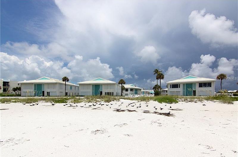 This GORGEOUS 2 bed / 2 bath condo is ONLY 99 STEPS from the SANDY BEACHES of the Gulf of Mexico and just a few steps to one of two heated pools AND is being offered TURNKEY FURNISHED! 5400 Gulf Drive is PRIVATE BEACH FRONT CONDOMINIUM COMPLEX. Take a dip in the ocean side pool and listen to the waves crash on the beach or take a stroll at night and watch the sunset. The kitchen features Cambria Quartz counter tops, new appliances including a counter depth refrigerator, solid wood shaker style cabinets & built in wine rack. The guest bathroom has been updated with granite counters, new sinks and faucets. The Master bath has been completely remodeled with a new shower, sink, cabinet, faucets, and commode. The Florida Room has been enclosed and can be used as a dining room, den, or bonus room. The full size washer & dryer and two flat screen tv's will stay with the condo. Remote control blinds have been installed in the guest bedroom windows for ease of use. There is a large outdoor storage area for all of your beach gear. You can park your vehicle in the assigned, covered carport which is steps to the front door. Both exterior doors & storage door have been upgraded to hurricane doors. This beachfront complex offers two heated pools, shuffleboard, and a clubhouse. Anna Maria Island offers a complimentary trolley with stops made throughout the island. At least one of the owners must be 55 or older and pets are not allowed.