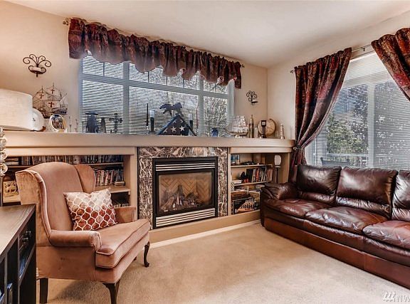 Back on Market! Come see this immaculate ground floor level entry three bedroom two bath home! Updated with a new gas fireplace, new bathroom tile & dramatic gorgeous kitchen counters! Spacious master features his & her closets an ensuite bath & a built-in ironing board! Enjoy the rare convenience of a large garage PLUS an assigned carport just steps from your door! Near plenty of guest parking in a quiet neighborhood within walking distance of Mukilteo schools, recreation, library & freeways.