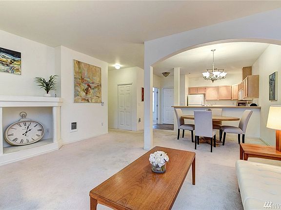 Beautiful First Floor Condo in desirable Nantucket Community. Just a few steps from your covered parking spot. Tall ceilings, large windows and an open floorplan. Open kitchen w/ breakfast bar and lots of counter space. Dining room and a nice sized living room with fireplace walks out to private patio. Perfectly designed master suite with large closet and walk in shower. Two more nice sized bedrooms. Enjoy all the luxuries of this location. Walk to coffee shop, restaurants, Village Center Place and more. Minutes to the ferry, beach, I5 and 405.