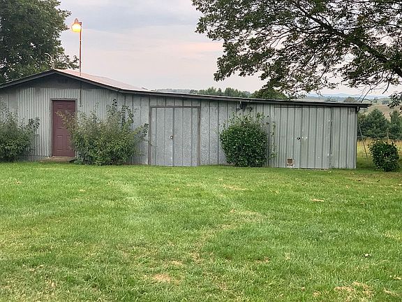 brick home with new metal roof. large paved driveway. 2 lots with house. Basement fully finished. 24 fruit trees. 6 outside storage units.