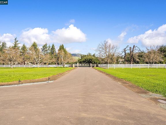 Experience country living just minutes from town! Nestled on a flat ~5 acre lot in Tassajara Valley, this single-story rancher has undergone major renovation/updating, offering the opportunity to own a mini-ranch/vineyard/equestrian property. The hardwood floors flow into the living rm featuring a vaulted ceiling w/exposed beams. The open-concept layout connects the kitchen, great rm w/a brick fireplace & built-in shelves, & dining area boasting windows framing backyard views. The stunning kitchen is appointed w/island, stone counters, SS appliances, custom shaker cabinets, tile backsplash & pendant lights. You'll find a private patio off the primary bedroom & pocket door to the luxurious bath complete w/a bidet, shower & double sinks. 2 secondary beds, hall bath, laundry rm, half bath & mud rm. The backyard features a PebbleTec pool, patio, childrens' play area, planter beds w/drip irrigation, pasture fencing w/4-rail metal design, animal housing w/automatic water, tack rm & hay storage structure w/ concrete pad - a perfect set-up for ranch animals. 10K-gallon water filtration system, owned solar, Enphase battery backup system, synthetic front yard grass, evergreen trees, lean-to coverings for animals, backyard fencing, site perimeter wall & driveway w/automatic gate entry.