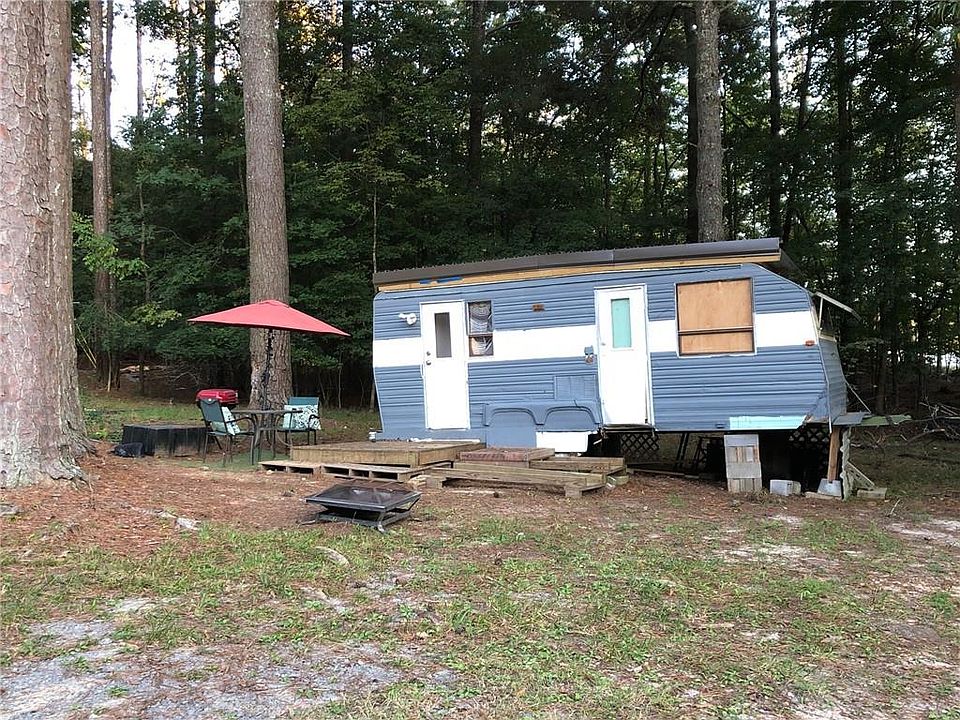 Tiny House at Lake Allatoona in Glade Marina! Interior renovation of travel trailer into a 1 bedroom studio with a full bathroom featuring a shower stall (no tub). Kitchen is open to the studio space and all new sub-flooring, stud walls, vinyl plank flooring, have been recently installed. The bedroom area features a queen sized built in bedframe with storage underneath. The exterior needs cosmetic work. The original trailer roof now has a metal roof over and the second door & window in the front of the trailer are fixed closed. Great getaway for 1 or 2 people. There is a fire pit and plenty of space in the yard to enjoy the view of Lake Allatoona from the ridge where the trailer sits. What is for sale is the trailer which is affixed to Corps of Engineer property under the management of Glade Marina. The approximate rent per month is $633 and includes well water and the security that the gated entry affords this community. Deer come to feed nightly in the yard and you are only steps from the lake and all of the boating activities that Glade Marina has to offer. No owner financing available. Cash only as traditional financing is not available for this type of dwelling. Other properties in this neighborhood are selling for $100K and above. This is the only single travel trailer available in the neighborhood and does not have a permanent addition as many of the other homes do. This is why the price is so low. Must see inside to appreciate. Exterior needs skirting and the 2nd door needs to be replaced. The second door is closed off from the inside and is inoperable.