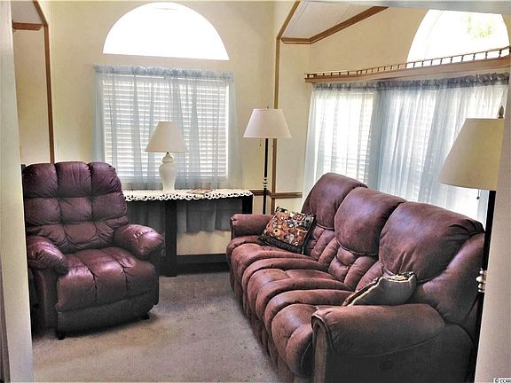 RV community located on the marsh overlooking north end of Cherry Grove beach. Community offers several lakes/ponds, 2 heated pools, Jacuzzi, picnic areas, basketball, horseshoes, tennis courts, club house, mini golf, beautiful sunrise views. This 2 bedroom 2 bath home is unique because it has 2 water heaters, which means no cold showers, and the laundry is inside, versus in the storage building, which many homes have. This casual lifestyle is made easier by driving your golf cart to local spots of interest. Enjoy this home as a retreat, or, as many neighbors do, a full time residence. Start relaxing!