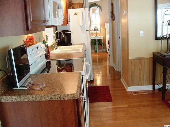 Absolutely adorable, fully renovated 2 BR/ 1.5 BA in desirable MB RV Resort. Walk into an open airy floor plan. Family room is bright & light & features tiled floors and wonderful wall of windows. Move forward into a tiled bedroom with half bath. Walk into the open beautiful hardwood floors of the dining & kitchen area. Kitchen is beautiful with new cabinets, counters, appliances & pantry. Master bedroom features hardwood floors and tons of light. Master bath has granite top vanity, walk-in shower, tiled floor. This home is adorable & affords owner all the amenities of MB RV Resort. Enjoy the composite floors in the front desk & back deck. A great place to enjoy your coffee & cool drinks in the mornings & afternoons. Nice , large storage building for all your beach chairs & umbrellas.