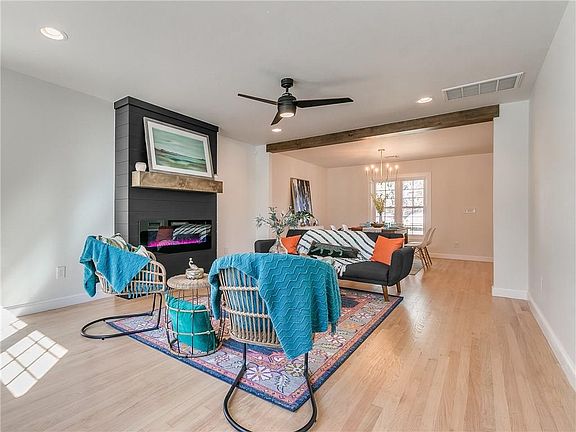 Fully renovated modern farmhouse located in the heart of OKC! Refreshing style boasting an abundance of natural light and gorgeous refinished oak wood flooring. Offering 3 full bedrooms, 2 full bathrooms, & a laundry/mudroom all on one level. Taken to the studs including a new roof, electric, plumbing, HVAC, hot water tank, fresh paint, new insulation and more! Spacious kitchen including custom cabinets, quartz countertops, farm sink, gas stove, and a stainless steel refrigerator. An incredible master suite addition to the home awaits you with a modern fireplace & a large walk-in closet. Pinterest worthy master bathroom with double vanity, walk-in shower, & a free-standing spa tub. Large backyard including a newly built wood deck great for entertaining family and friends. Enjoy your morning coffee on the peaceful covered front porch. Located in a quiet safe neighborhood perfect for walking your fur babies. Close to Classen Curve shops & restaurants, Whole Foods, StellaNova cafe & more!