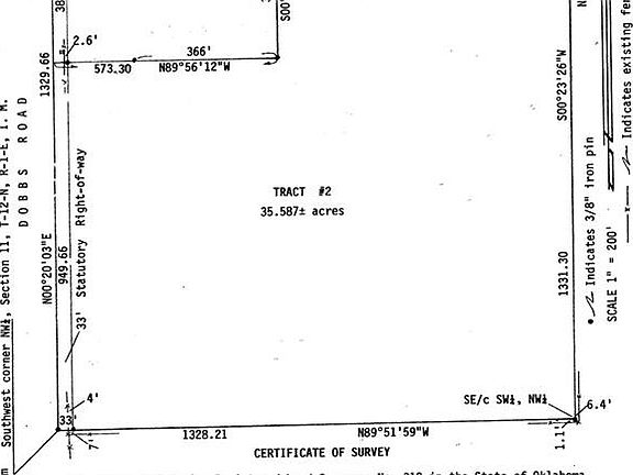 35.587 acres MOL shown as Tract 2 in the survey. Seller reserves mineral rights. The adjoining 5 acres MOL with the home and pond located at 5700 N Dobbs Rd shown as Tract 1 in the survey is also listed for sale.