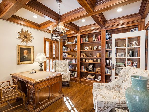 - Interior: 10 ft+ Ceil Main, 2-Story Foyer, Entrance Foyer, Bookcases, Exposed Beams
