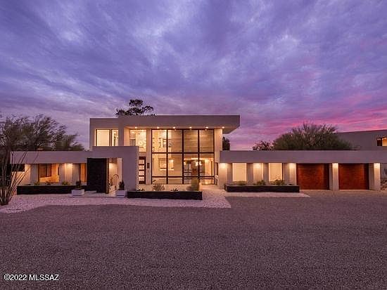 A luxury contemporary designed by architect Kevin B. Howard. A unique property with two homes on one lot in the Catalina Foothills, enjoying both panoramic mountain and city views.This home boasts a custom Italian designed Poliform kitchen, a sparkling white 12 ft quartz countertop island, steam oven, warming drawer, induction cooktop, and extra-large fridge/freezer. Enjoy a spacious walk-in pantry. A custom Media room off the living area with a 80 ft TV screen , custom lighting and a marble fireplace. A dream private master suite occupying the entire second floor with an office, bedroom, walk-in wet room with stone resin tub and double shower-head showers . A walk-in closet with a skylight and walk-out decks overlooking the entire city. The main floor with 3 bedrooms and 3 baths, with an A luxury contemporary designed by architect Kevin B. Howard. A unique property with two homes on one lot in the Catalina Foothills, enjoying both panoramic mountain and city views.This home boasts a custom Italian designed Poliform kitchen, a sparkling white 12 ft quartz countertop island, steam oven, warming drawer, induction cooktop, and extra-large fridge/freezer. Enjoy a spacious walk-in pantry. A custom Media room off the living area with a 80 ft TV screen , custom lighting and a marble fireplace. A dream private master suite occupying the entire second floor with an office, bedroom, walk-in wet room with stone resin tub and double shower-head showers . A walk-in closet with a skylight and walk-out decks overlooking the entire city. The main floor with 3 bedrooms and 3 baths, with an additional rock-climbing/game room. The main home has been completely renovated with all new plumbing, electrical, walls, lighting, flooring, appliances, bathrooms, windows and doors, insulation, garage doors, driveway, and landscaping. For insulation this home is wrapped in waterproofing material, then layered with foam, topped with fireproof concrete boards, and sprayed with a unique and rare cork material from Spain.