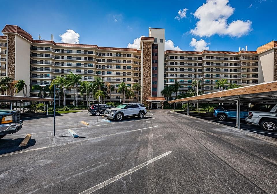 Beautiful water views from this 6th floor corner unit with wrap around balcony. Spacious split plan 2 bedroom 2 baths with primary bedroom having 4 large closets including one big walk-in, an updated en-suite bath with shower and sliding glass door to lanai. Updated kitchen, and cook with GAS... This building has no water heaters in each unit. Cooking, Clothes dryer, hot water, heat, all is with gas and included. You have a separate large dining area, living room with sliding glass doors to amazing water views. Hurricane shutters throughout for your protection. Great amenities included such as heated pool, club house, fitness center, tennis court, pickleball court, billiard room and more..Covered carport space. Your monthly rent includes water, sewer, trash, basic cable and internet, pest control, so really everything except power. Proximity to everything...Restaurants, shops, Publix, Tyrone mall, Seminole City center, Kohl's plaza, Seminole Park, Madeira Beach and more. NO age restrictions.