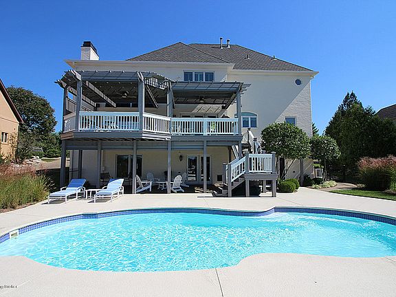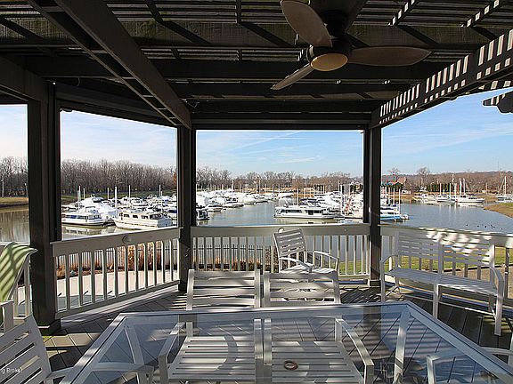 Private gated community located at Captains Quarters Marina. Resort style living at its best. Spectacular views of the marina from rear of home. Extended deck overlooking inground pool. The home features an open floor plan with soaring ceiling, gorgeous moldings, hardwood floors & large ceramic tile. Remodeled Eat-In Kitchen has granite counter tops, 5-burner gas cook top, wine cooler, and beautiful cabinetry. Butlers pantry adjoins kitchen to forma dining room with extensive moldings and hardwood floors. 2 story great room with custom built in cabinets, fireplace and hardwood floors. Convenient first floor office off the foyer.Second Floor features Loft/library with bookshelves. The spacious master bedroom has double closets. Expansive Full bath with dual vanities. The walkout basement
