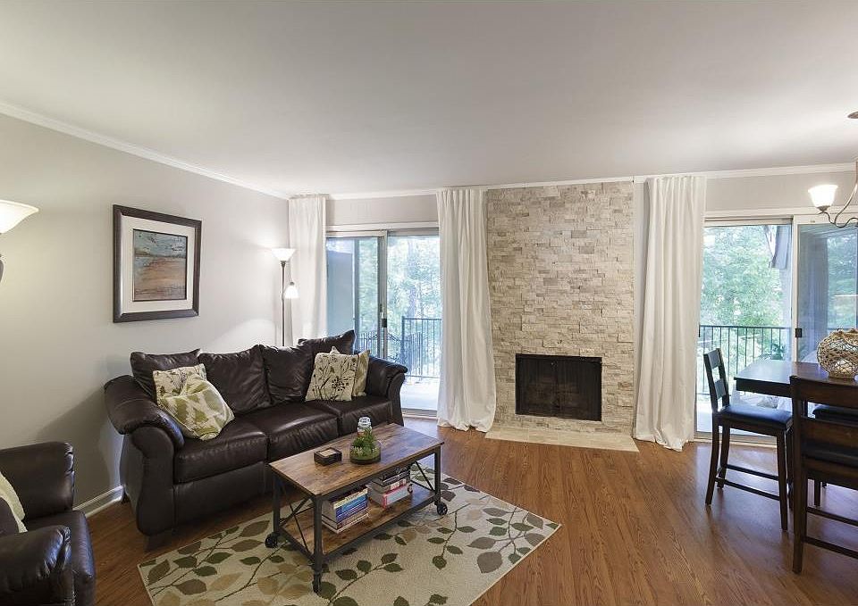 In the heart of Sandy Springs! Quiet, top floor 2BD/2BA condo just minutes from Buckhead, Chastain Park, Sprouts, The Prado, Sandy Springs, 285 and 400. Fresh paint, woodflooring, fireplace, updates in bathroom and kitchen with granite. Private balcony with wooded view and a unique back entrance option. Swimming Pool and low HOA. Refrigerator, W&D included! This home is move-in ready and waiting for that special someone to make it their own!